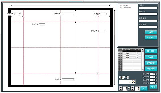 검사할 디스플레이의 크기를 설정하고 측정하고자 하는 포인트를 지정하여 균일도 검사를 수행할 수 있습니다.